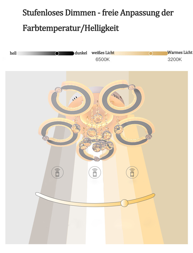 Lichtquellenleistung: stufenloses Dimmen mit Fernbedienung (weißes Licht, warmes Licht, neutrales Licht schaltbar, Helligkeit einstellbar)