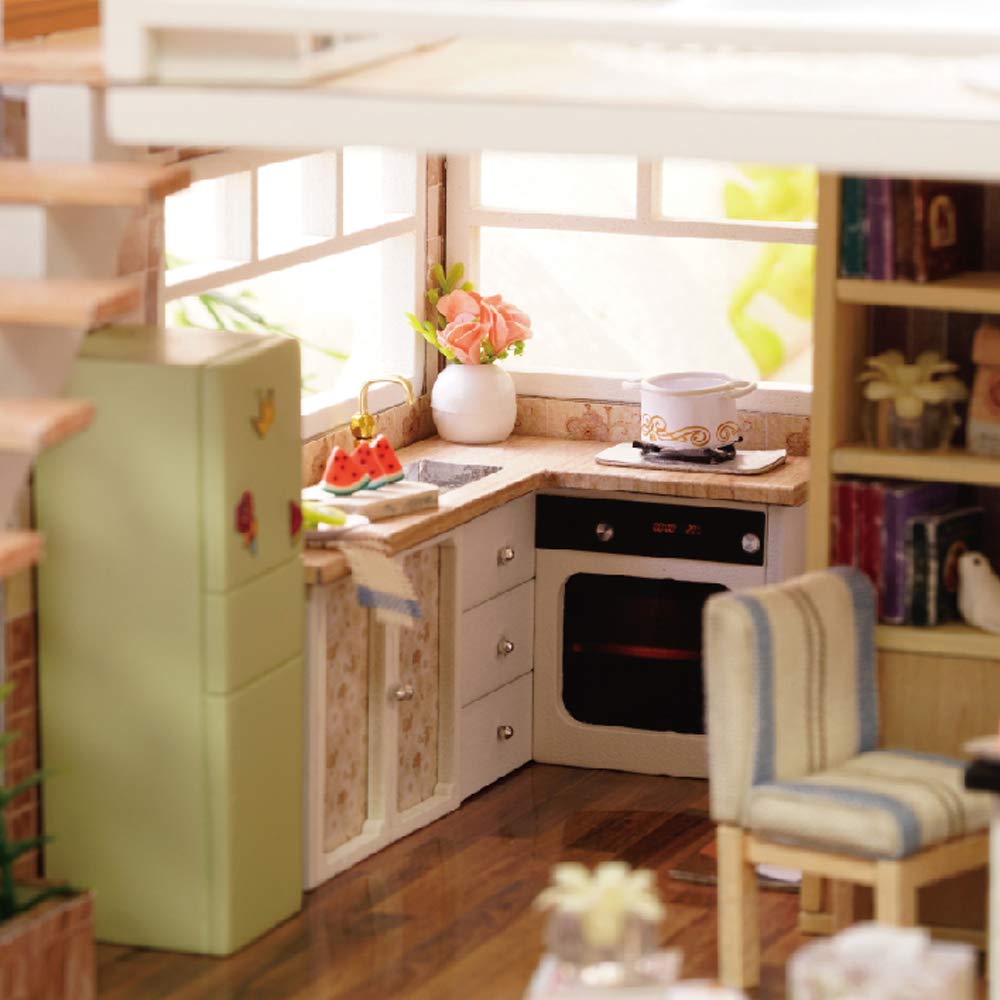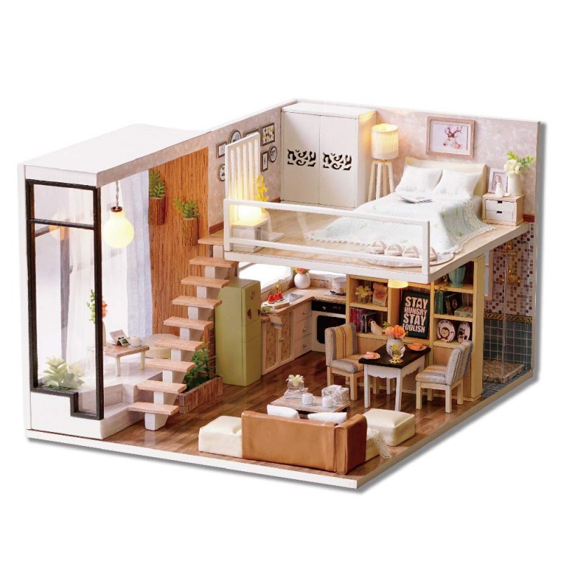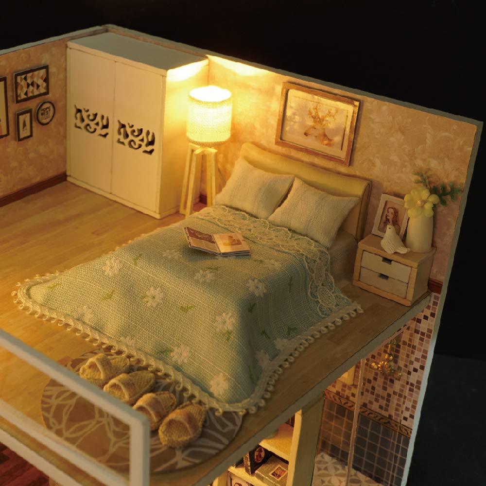 DIY Puppenhaus Moderne Atmosphäre Loft Wohnzimmer Schlafzimmer 3D Holz Miniaturhaus mit LED Licht Kunsthandwerk Geschenk für Valentinstag, Kindertag, Weihnachten, Hochzeit, Geburtstag