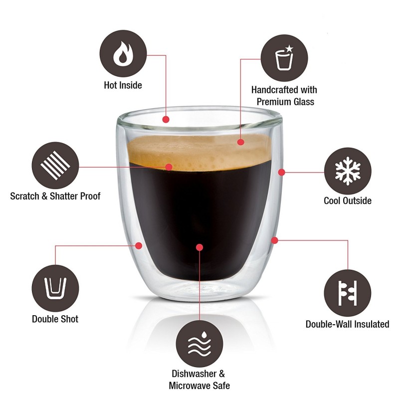 - Doppelwandige Gläser - Hitzebeständig und verhindert Kondensation innen mit versiegeltem Boden.