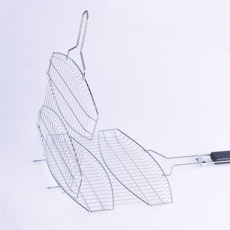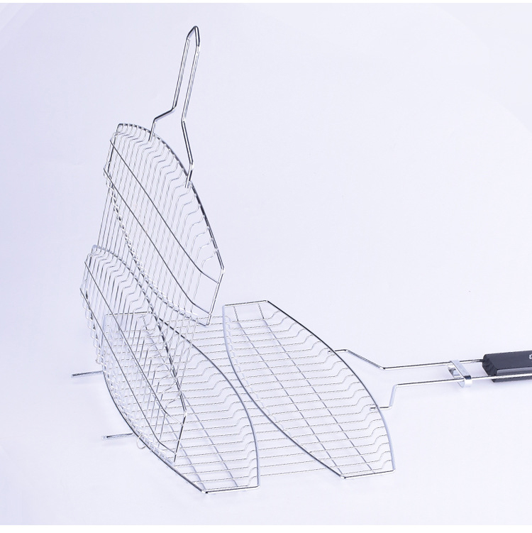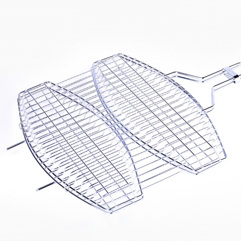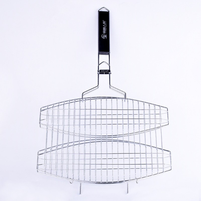Edelstahl BBQ Mesh Mandarin Duck Double Mesh gegrillte Fischzange Barbecue Gear Grill