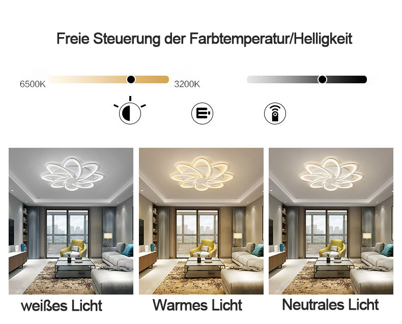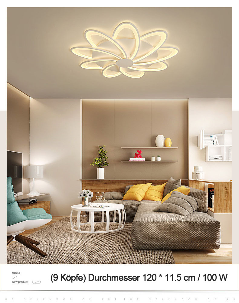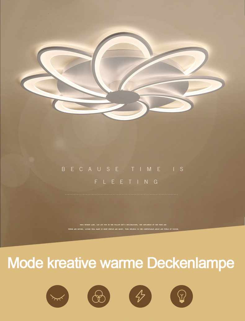 ●Die stilvolle, kreative und warme Deckenleuchte hat die Eigenschaften Augenschutzdesign, stufenloses Dimmen, Energieeinsparung, milde Lichtfarbe usw.