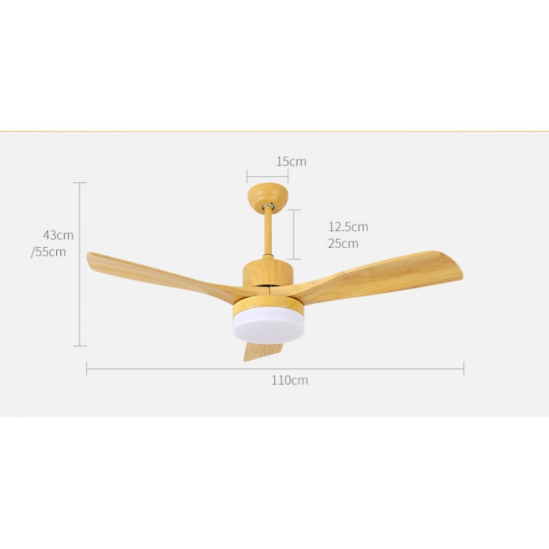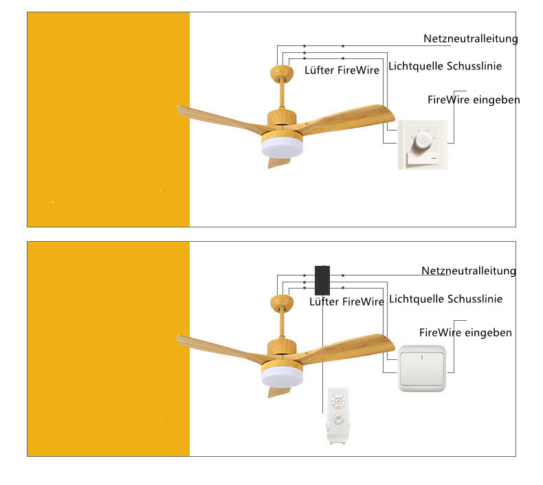 Eingebettete Deckenventilatorflügel: 3 ahornfarbene Flügel (60 Zoll Spannweite/13° Flügelabstand), einschließlich 3-Gang-Handfernbedienung.