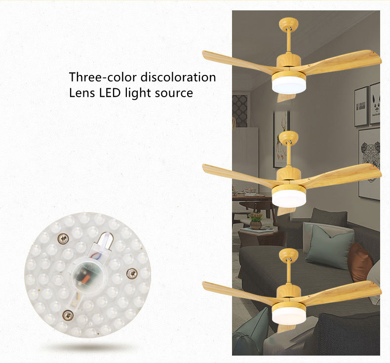 Schnellsuche Holz-Deckenventilator mit Beleuchtung, 3 geschnitzte Holz-Lüfterflügel-Deckenventilatoren, geräuschloser Motor, Ventilator mit LED-Beleuchtung