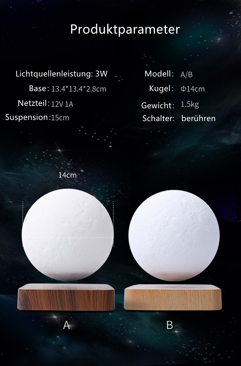 Magnetschwebebahn, Mondlicht, Planeten-Nachtlicht, kreative Schlaf-Schreibtischlampe, Nachtlicht, Geschenklicht