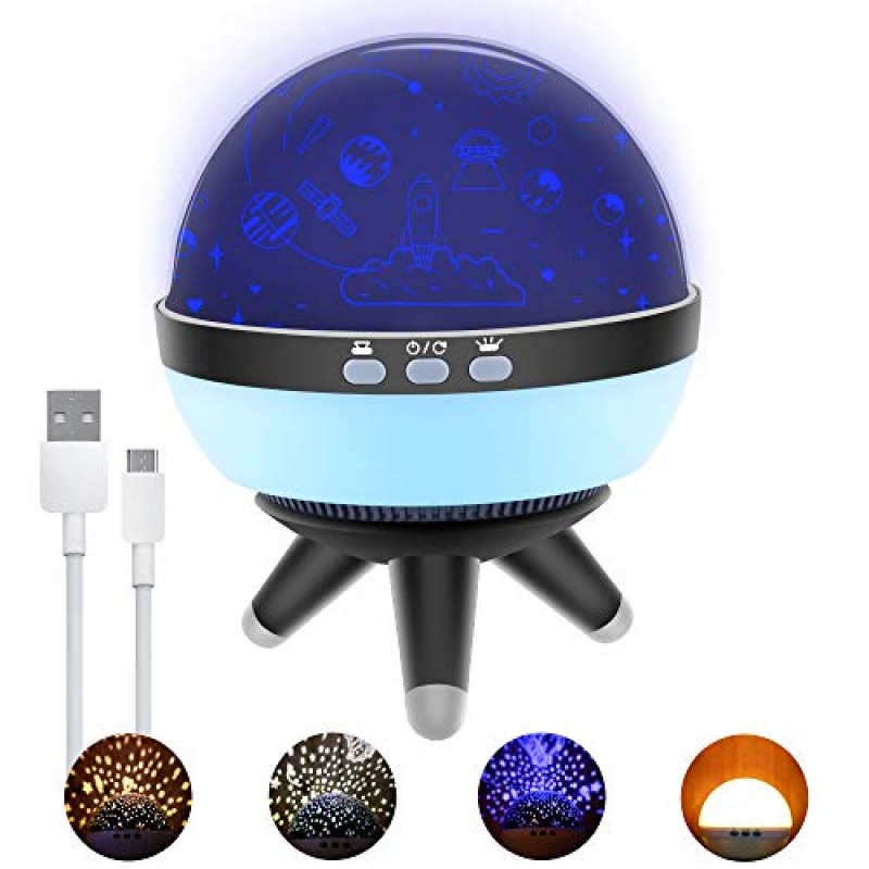 - So verwenden Sie dieses Nachtlicht: Auf der Vorderseite der Nachtlichtlampe befinden sich 3 Tasten. Sie können zwischen verschiedenen Farbdisplays, Lichtrotation und Lichtmodus wählen. Lichtquelle: Eine ist für den Schlaflichtmodus und eine für das Lesen oder Projizieren der Lichtanzeige. Die Projektorlampe verwendet 3 AA-Batterien und eine USB-Leitung ist angeschlossen. Es kann über den Computer / Notebook-Computer oder ein beliebiges USB-Netzteil angeschlossen werden. Der Akku ist nicht enthalten.