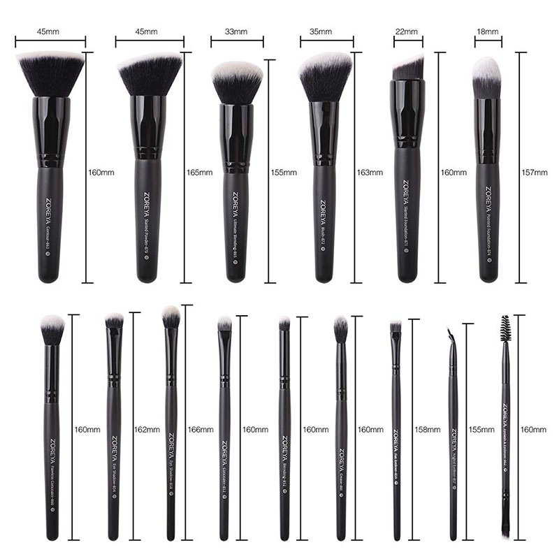 ZOREYA| Premium Reise Bürste Make-up | Set 15 teilig wesentlichen | Kunsthaar | Make Up Puder Kosmetik Pinsel | Pouchette Aufbewahrungsbox | Idee Geschenk