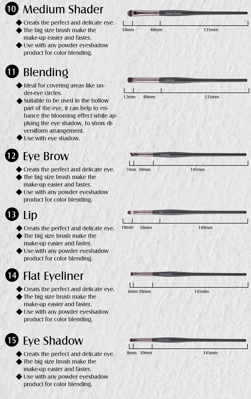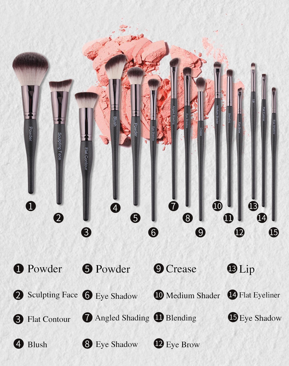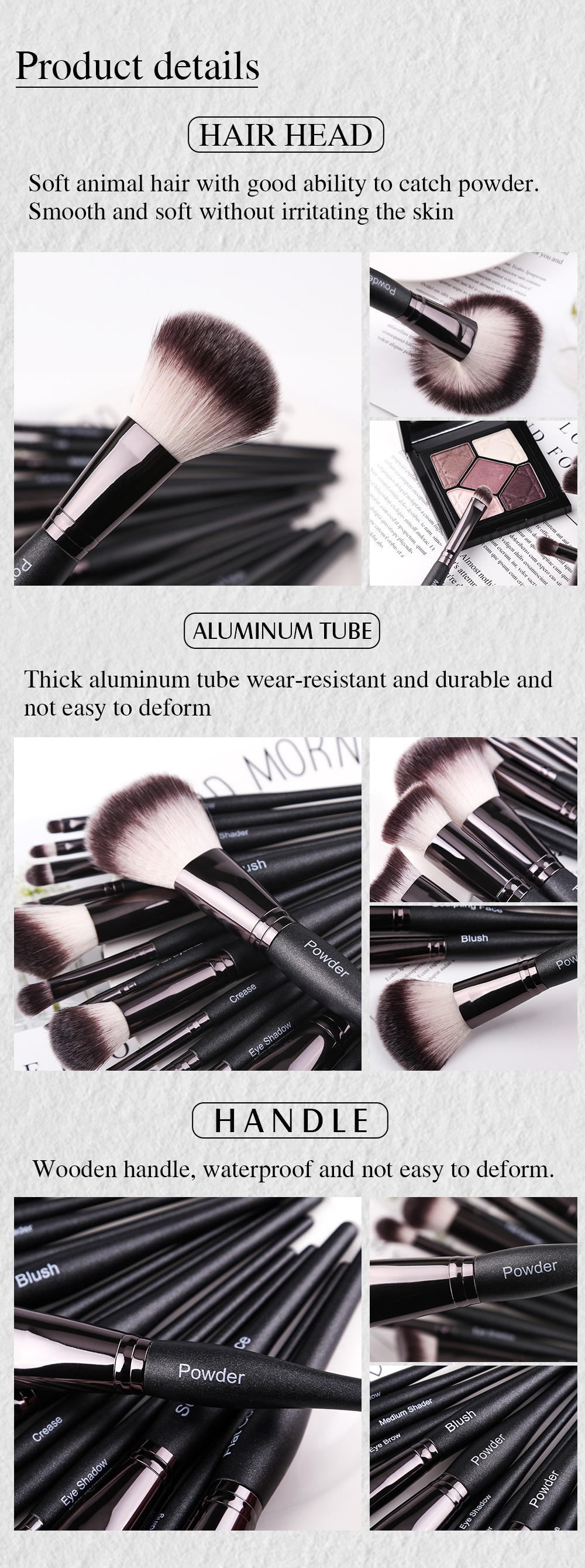 • Material: High-End-Holzgriff, hochwertiges Rohr, Faser-Baumwolle, super weiche 15-teilige Bürste, leicht, effektiv, professionelles Make-up.