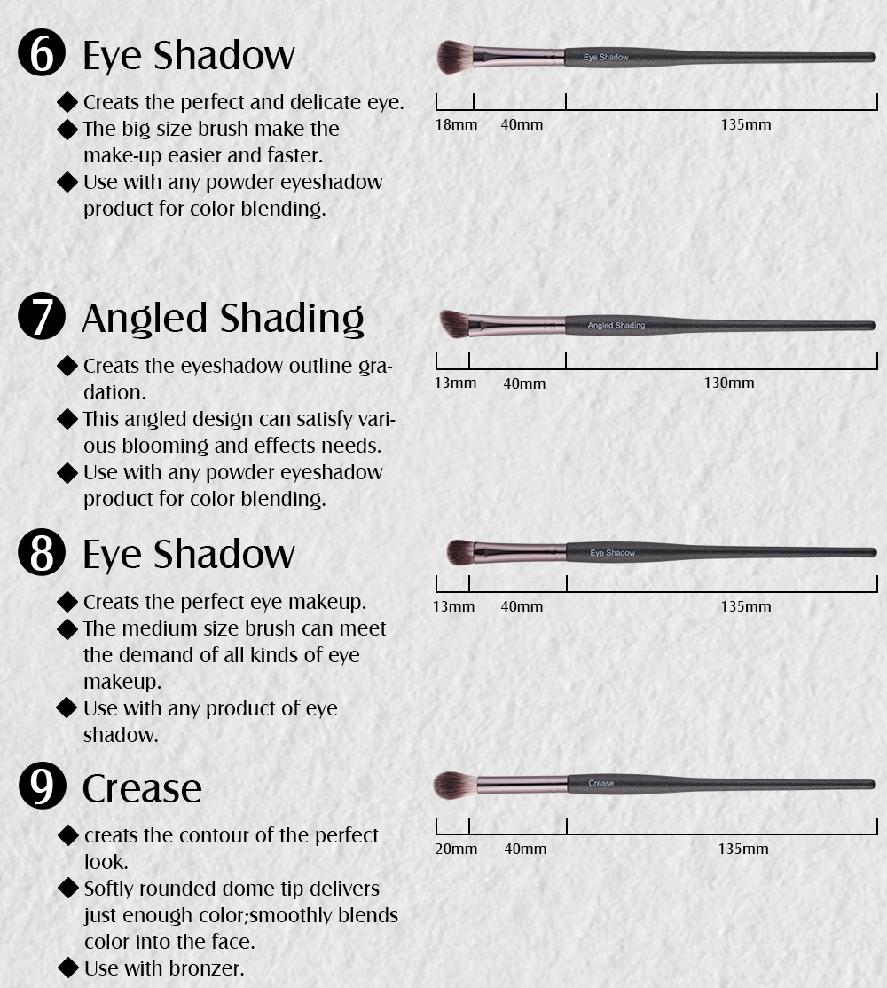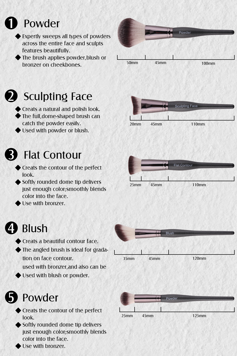 • Intensive Borsten sind ideal für Fundamente, Rouge oder Fundamente, und die Spitzen werden sorgfältig angehoben. Auch wenn sie sich ausbreiten, halten Sie sie sauber und ordentlich.