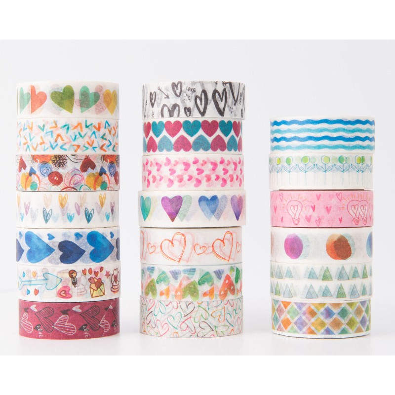 • 20 Rollen washi Band in verschiedenen niedlichen entworfenen Mustern. Breite 15mm, Länge 5m.