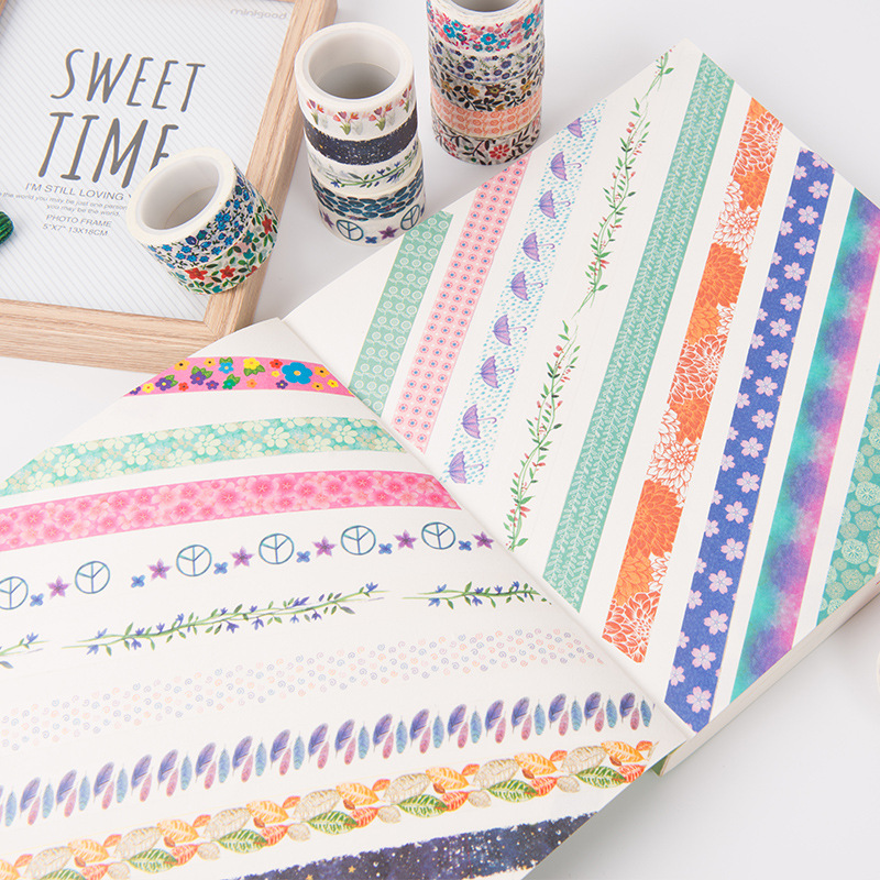 - Rollen washi Band in verschiedenen niedlichen entworfenen Mustern. Breite 15mm, Länge 5m.
