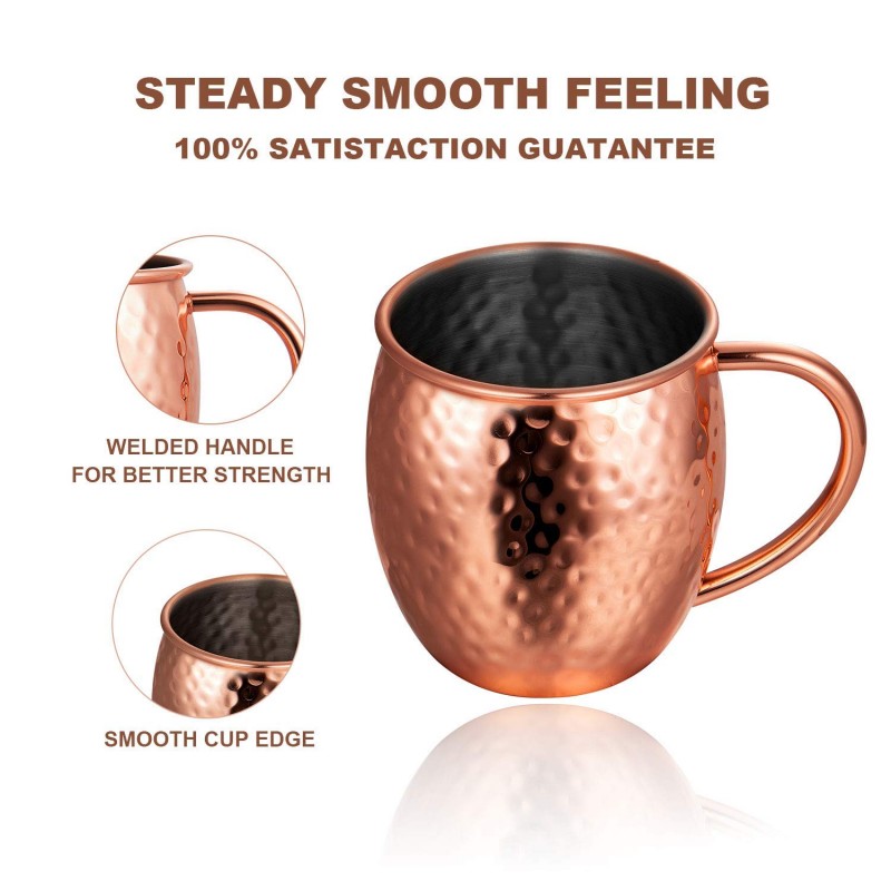 Satz von 4 Moscow Mule Copper Tassen mit Edelstahl-Futter - Premium Moscow Mule Geschenkset