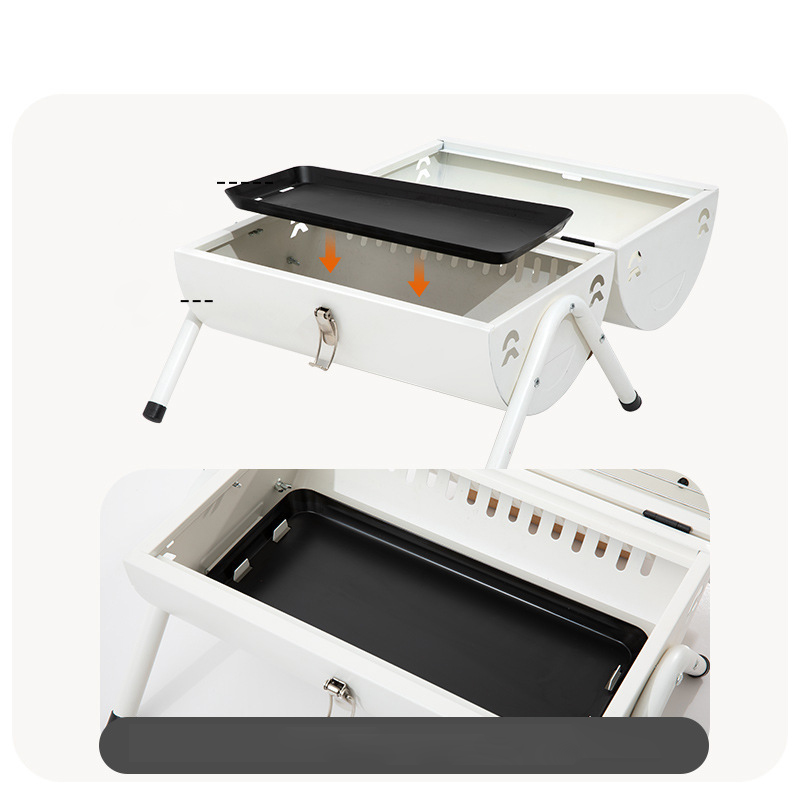 ●Unabhängiger Holzkohletank, leicht zu reinigen; setzen Sie zuerst den Holzkohletank in den Ofenkörper ein und fügen Sie dann Holzkohle hinzu, damit die Holzkohle nicht direkt mit dem Ofenkörper in Kontakt kommt und ein Durchbrennen des Ofenkörpers vermieden wird