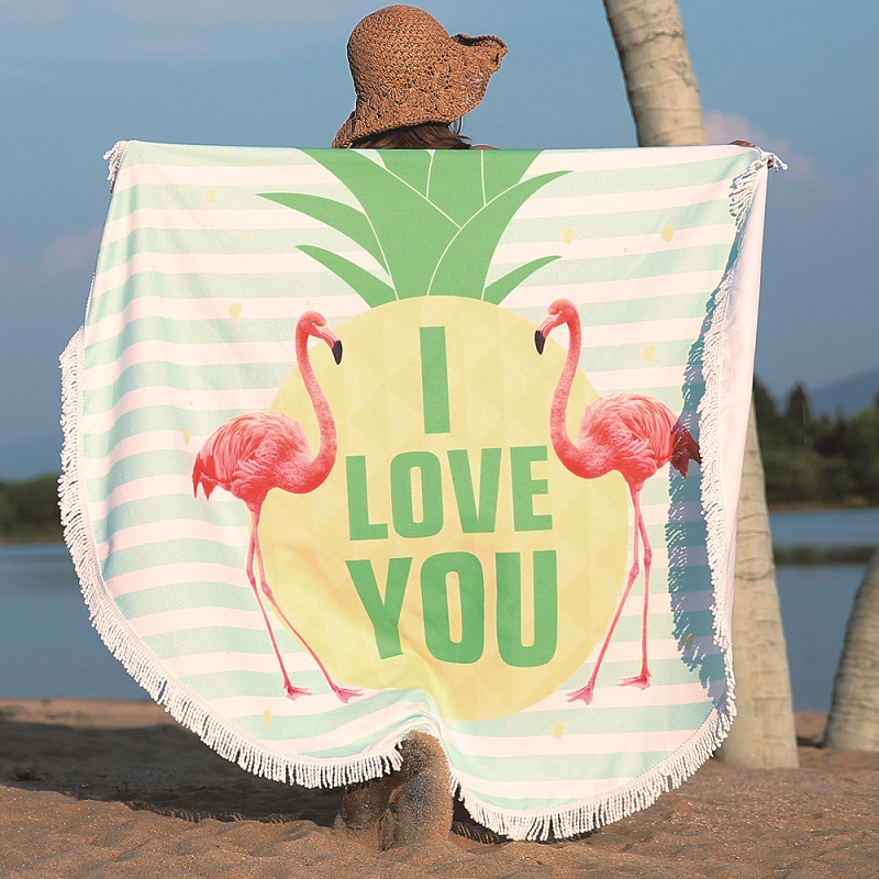 Runde Strandtuchdecke - Pink Flamingo Large Mikrofaser Terry Beach Roundie Circle Picknick-Teppich mit Fransen für Damen