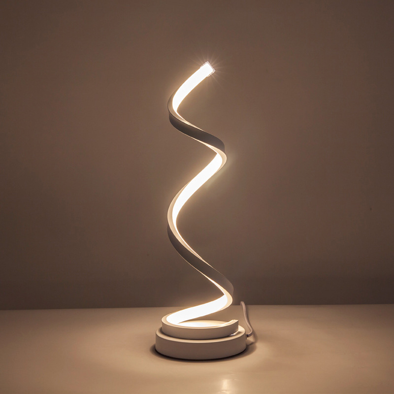 Schnellsuche Spiral LED Tischlampe, gebogene LED Schreibtischlampe, zeitgenössisches minimalistisches Beleuchtungsdesign, warmweißes Licht, intelligentes Acrylmaterial, perfekt für Schlafzimmer, Wohnzimmer