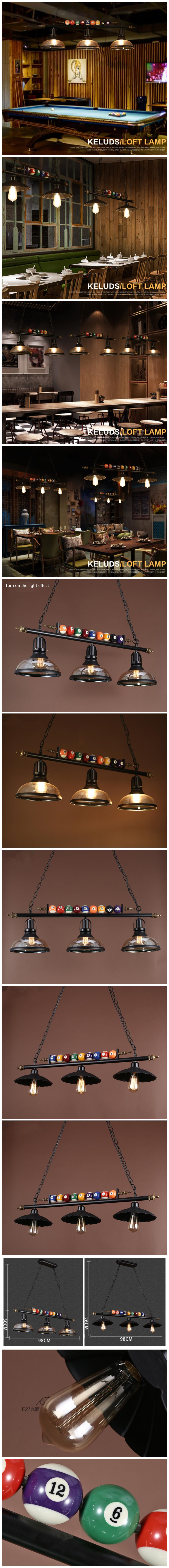 Industrielle loft Vintage Billard Pendelleuchte Eisen und Glas Shades Esstisch Kronleuchter Restaurant Bar Hängelampe